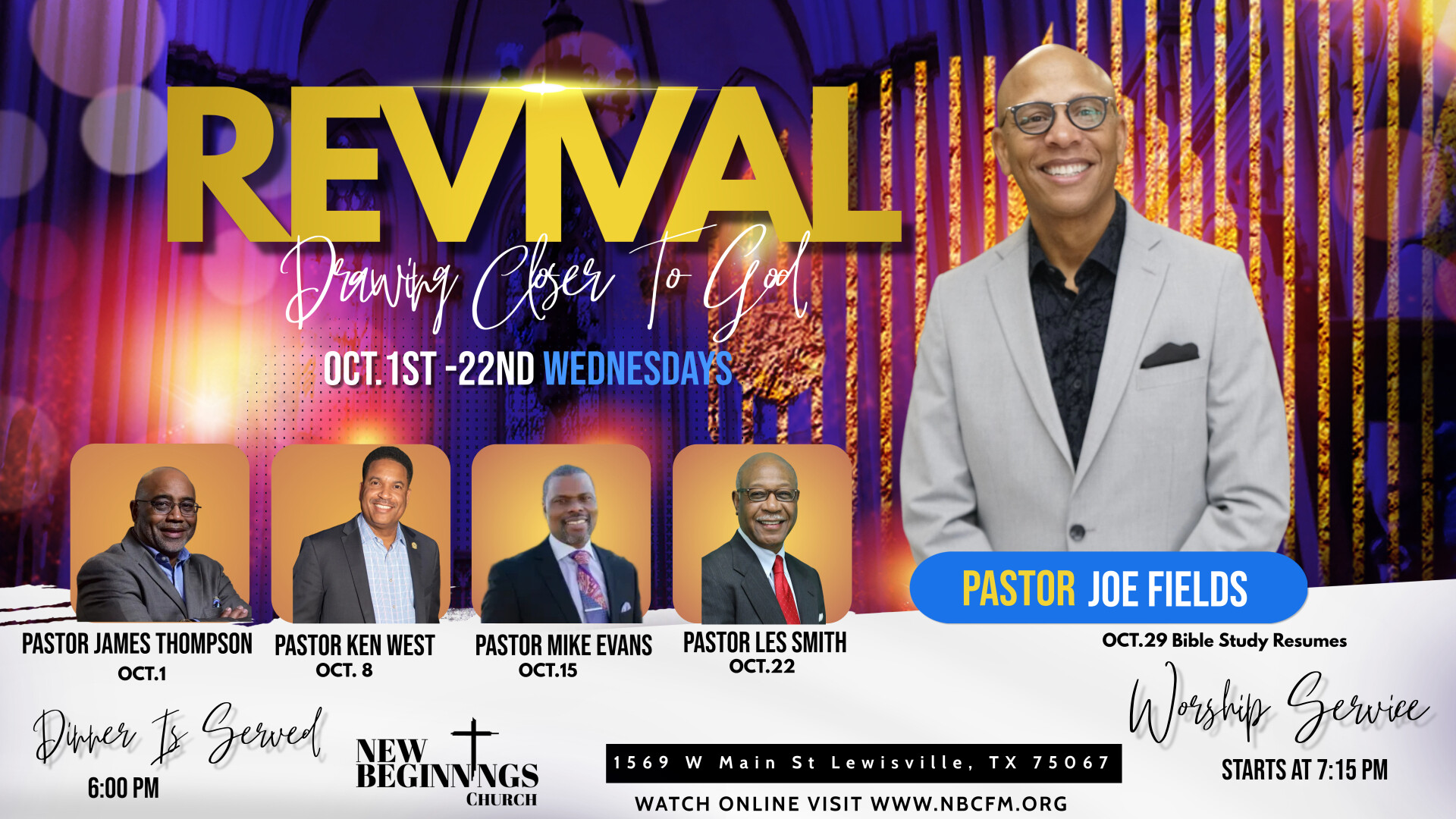 - Oct 29th - Regular Bible Study Resumes w/ Pastor Fields